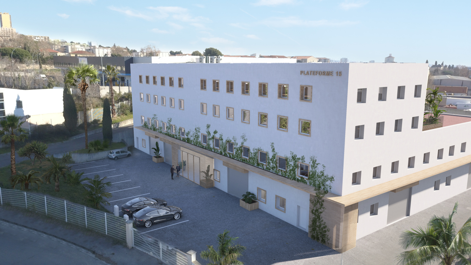 Aux portes de Marseille, au sein du Parc de la Lauzière, Plateforme 15 fait l'objet d'une remise niveau complète, ravalement, espaces verts, terrasses, végétalisation des façades pour offrir un environnement attractif, flexible, sécurisé et adapté aux TPE / PME.